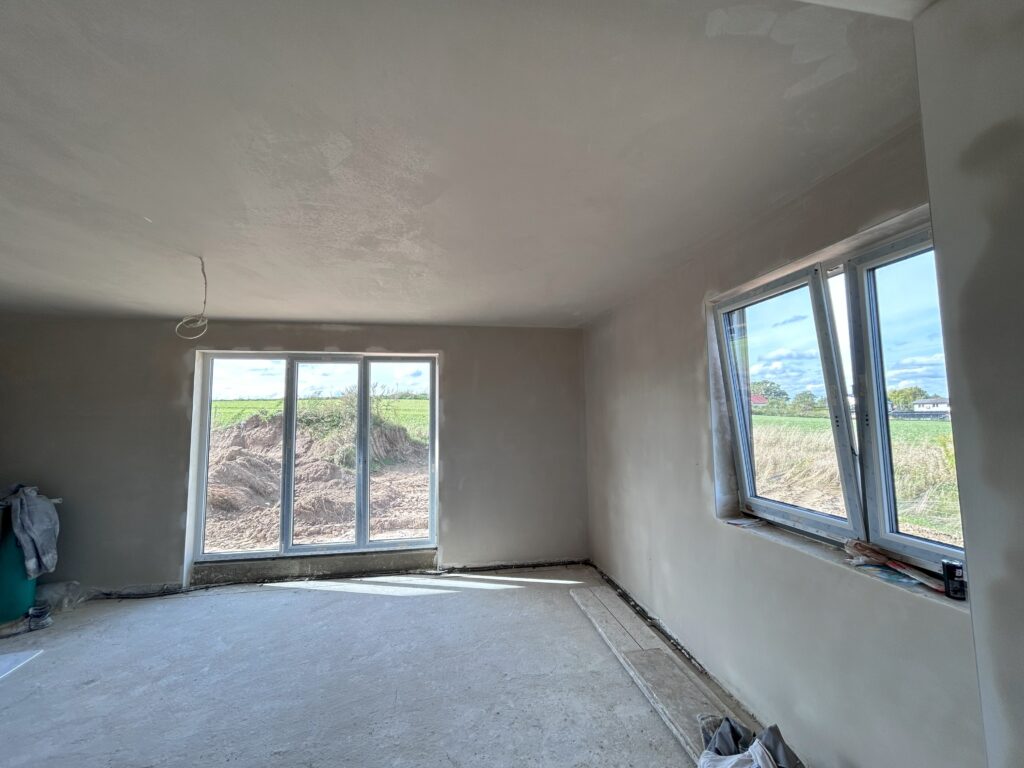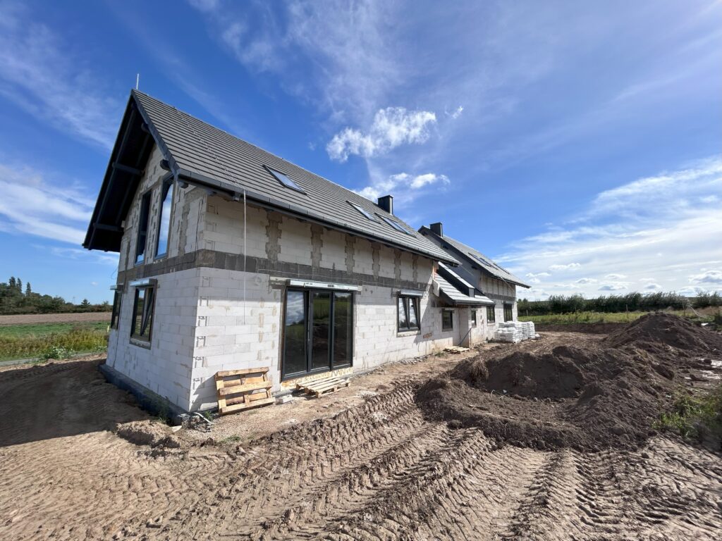 Dom w stanie surowym zamkniętym, widocznym na zdjęciach, przy czym budowa cały czas postępuje i cena będzie aktualizowana. Dom można nabyć już na obecnym etapie i dalsze prace wykonać samodzielnie lub zlecić do dalszego wykonania.